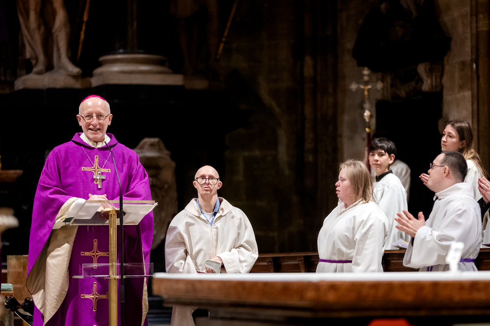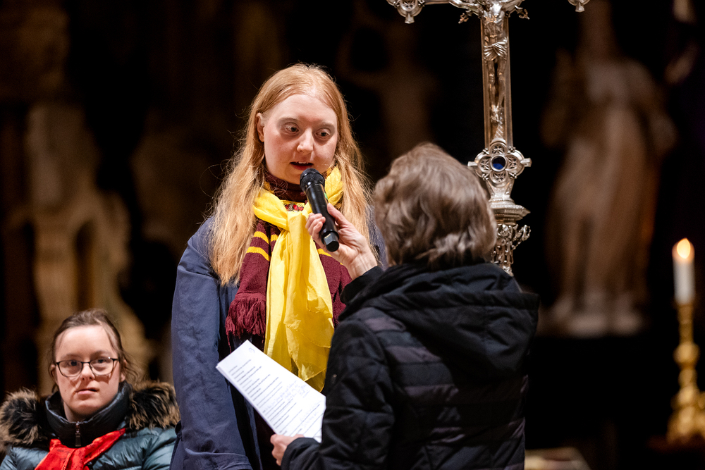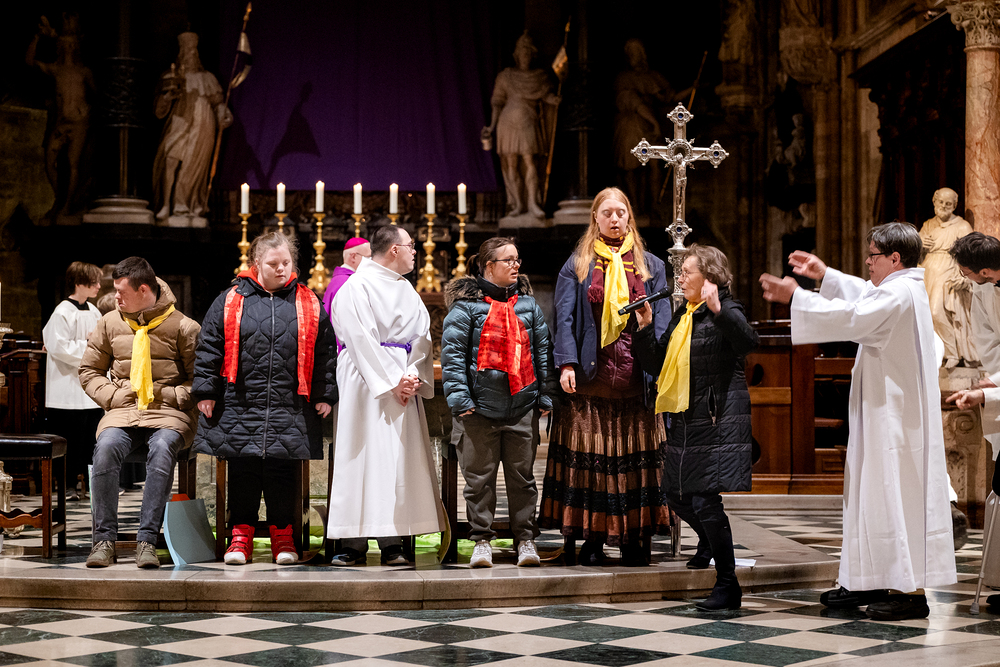 Rund um den "Welt-Down-Syndrom-Tag" am 21. März findet im Wiener Stephansdom ein besonderer Gottesdienst statt. Die Messe wird von Menschen mit Down-Syndrom und deren Familien gestaltet. Die musikalische Gestaltung übernehmen die Gruppen Faith4U&Me und Veeh-Harfen Saitensalat. Wir waren mit der Kamera dabei.