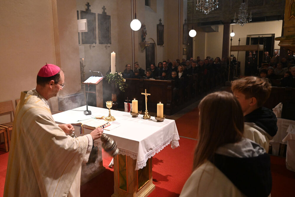 Die Pfarren Hautzendorf und Unterolberndorf hielten ihre Osternachtsfeier gemeinsam ab. Bischof Stephan Turnovszky stand der Feier als Zelebrant vor.